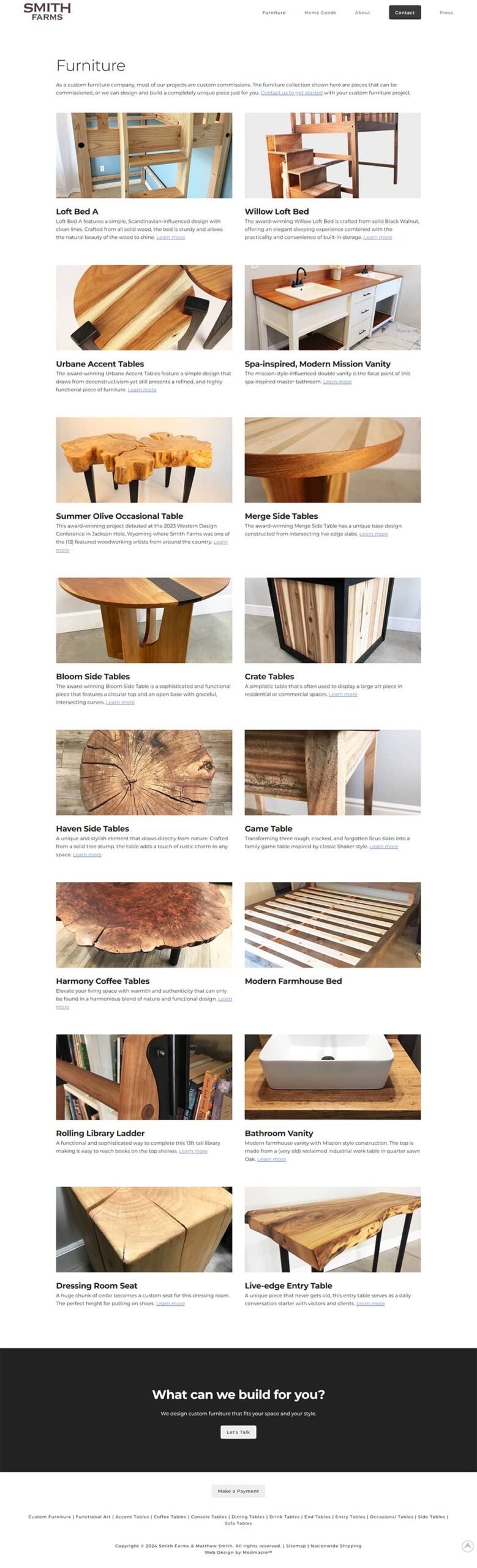Logo and Website Design for Custom Furniture Company in Menifee, CA - Smith Farms